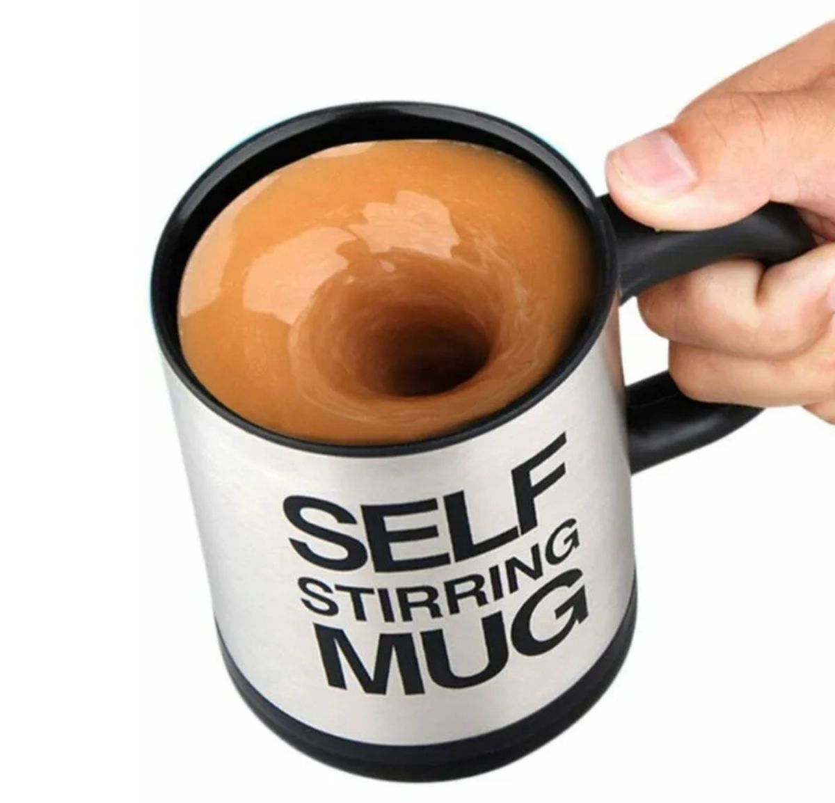 simply press the self-stirring button on the mug and the propeller at the bottom will spin into action,