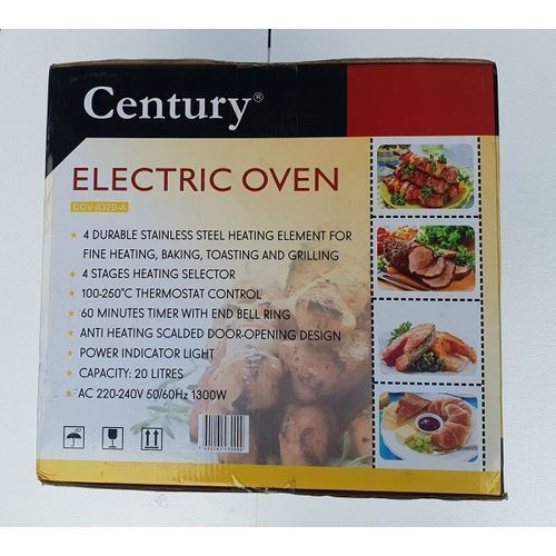 Century 20 liters Electric Toaster Oven is a well-designed kitchen appliance that packs outstanding features which make it possible for you to prepare a variety of dishes in quick time. It is highly efficient and can be used for both baking and grilling.You can have properly grilled chicken and fish or mouth-watering pastries whenever you want with this reliable electric oven. It is portable and built so it can be placed on your kitchen top without it taking up much space. The transparent door enables you to monitor the grilling or baking process.