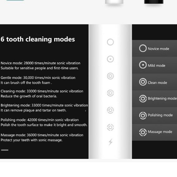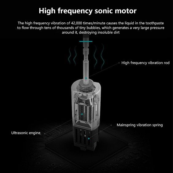 - 2. High-frequency sonic motor, 42000/min, cleans insoluble dirt.