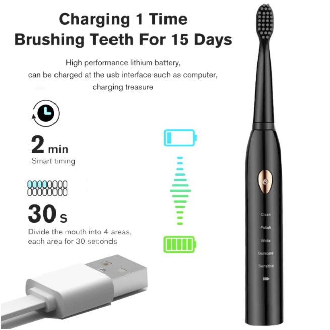 - 2 minutes auto timer, 30-seconds intervals to ensure thourough brushing in four quadrants