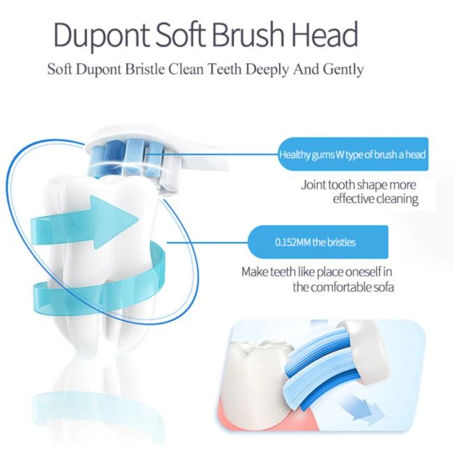 - Gently and effectively reaches deep between teeth and along the gumline