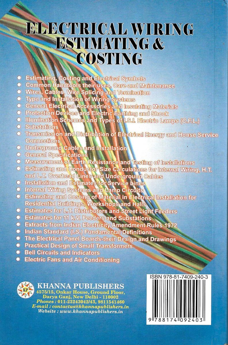 - Estimating and costing of material in electrical installation for residential buildings, workshops and halls