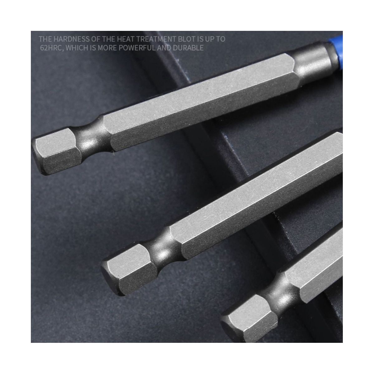 The hardness can reach HRC62 degrees The hex wrench set is suitable for electric drills with speed control electric screwdrivers hand screwdrivers Please do not use drill bits on air tools pneumatic drills and electric drills without speed controls Thanks to its durable construction and superior technology the drill has a long lifespan
