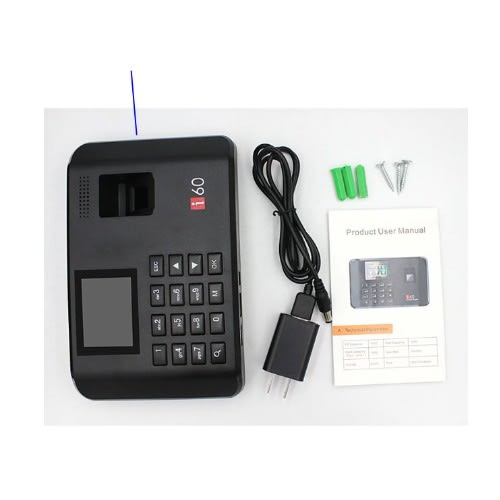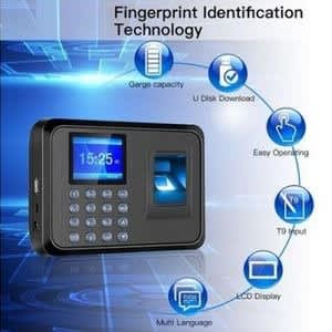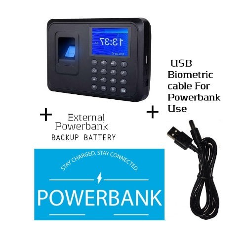 Note - if you have your own powerbank and want to use with the machine, make sure its plugged to port 2.1A of the powerbank.also note that if your powerbank current is unstable or supplies excess current,it can reset the machine to default. please use a stable powerbank.features 2.4-inch TFT high-definition color screen, display the fingerprint image, English display names, the voice prompts. Sensitive Identify Speed Simple operation, Easy management, Offline Use, Standalone, no need software, no need memory card, no need connect computer internet. USB one-key download date sheet from machine Language : English or Chinese The sixth generation of fingerprint identification technology, high recognition rate, recognition of less than 0.5 seconds. T9 input method, edit names directly from attendance button. Large memory Attendance record -100000 finger record - 1000 Password record - 1000 Powered Capacity - Dc 5volts adapter Note -this device is powered by electricity Super capacity. Attendance machine also can be directly help you scheduling, can be set up to 10. Fingerprint verification has corresponding voice prompt success or failure, at the same time, the screen prompt words. With repeated confirmation time remind function. Can be directly set personnel information on the attendance machine, without using computer, saving cost greatly. Only after the success of the fingerprint verification of the administrator, can enter the fingerprint machine Settings menu, ordinary users can't enter the menu operation, ensure the safety of data. This device is powered by electricity AC 220V , Not with inbuilt battery. also external batteries , UPS , Powerbank can also power it but not included. Log Capacity: 100,000 events Authentication Method: Fingerprint, Password U-disk Upload / Data Download: support Record Query: support (people can query their own attendance record after authentication) Rotational Angle: Total Rotational Angle Effective Sensing Area: 16*16mm Identification Time: & le;1s FRR: & le;0.1% FAR: & le;0.00001% Operating Mode: Off-line / On-line Authentication Mode: 1:1, 1:N Language: Chinese, English, Korean Voice Prompt: support Power Management: Auto Sleep Time, Auto Power Off Time Power Adapter: DC5V/1A Operating environment: Operating Temp: 0 & deg;C~+45 & deg;C, Humidity: 20%~80%RHPackage include1 x Biometric Fingerprint Time Attendance1 x Adapter1 x User Manual