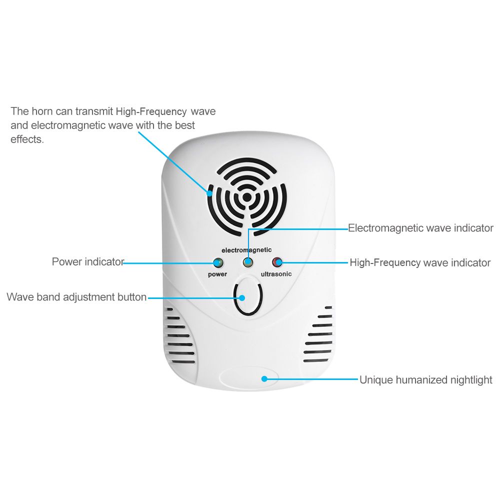 The product adopts the latest microelectronic technology that can produce extremely low frequency electromagnetic wave and high-frequency wave intermittent alternately, which can deter unwelcome pests, like mouse. The wave makes the pests feel uncomfortable and the nightlight makes the them be scared, so the pests will flee away.