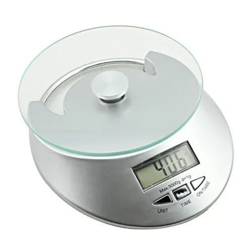 The Electronic digital kitchen scale provides a simple, efficient way to weigh common food items.