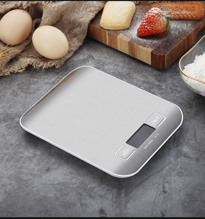 Electronic Kitchen Scales balance 5Kg/10Kg Cooking Measure Tools High Accurate Food Baking Scale stainless steel digital weight scaleFeatures:- Capacity: 5000g/10000g-1g- Units: g / kg / lb / oz /ml(water) / ml(milk)- Color: gold,silver- Display: LCD with white backlight- Stainless steel with fingerprint-proof finish- Auto zero point tracking- Auto turn off- Overload prompt: When this sign Err appears during weighing, it means the current load exceeds the maximum weight.- Unit - conversion switch: It can be converted mutually by pressing UNIT button.- High precision sensor- Power supply: 2 x AAA battery ( not included )Operation instruction:- Please put the scale on hard flat table- Press ZERO to switch on- You can start to weigh when 0 is shown on the LCDClick the Operating Instruction to learn how to use itReminder:- Please do not put the scale on carpet or a soft material when using it- Do not immerse the scale in water or use chemical / abrasive cleaning agents- After any plastic part of the scale body is stained with oil, spicy ingredients, vinegar or other stimulating substances, please clean it immediatelyType: LCD Digital Kitchen ScaleMaterial: Stainless Steel, PlasticColor: Silver,rose goldPackage weight: 0.285 kgProduct size (L x W x H) : 18 x 14x 1.30 cm / 7.08 x 5.51 x 0.51 inchesPackage size (L x W x H) : 20.70 x 16.35 x 2.90 cm / 8.14 x 6.43 x 1.14 inchesPackage Contents: 1 x Digital Kitchen Scale(withoutContainer and battery)1 x User ManualNote:1.There is oneor two layers of protective film on the outside, you need to tear it off before use, it will be silver or rose gold color.2.this item only digital scale,do not include container,food and batteries.