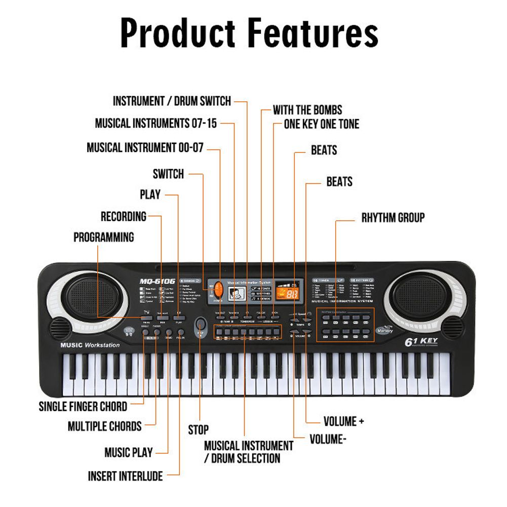 Comes with Microphone, this electronic music keyboard offers endle versatility to develop and sharpen your skills, or just enjoy hours of pure entertainment with friends and family. Great Birthday Christmas Festivaift for children