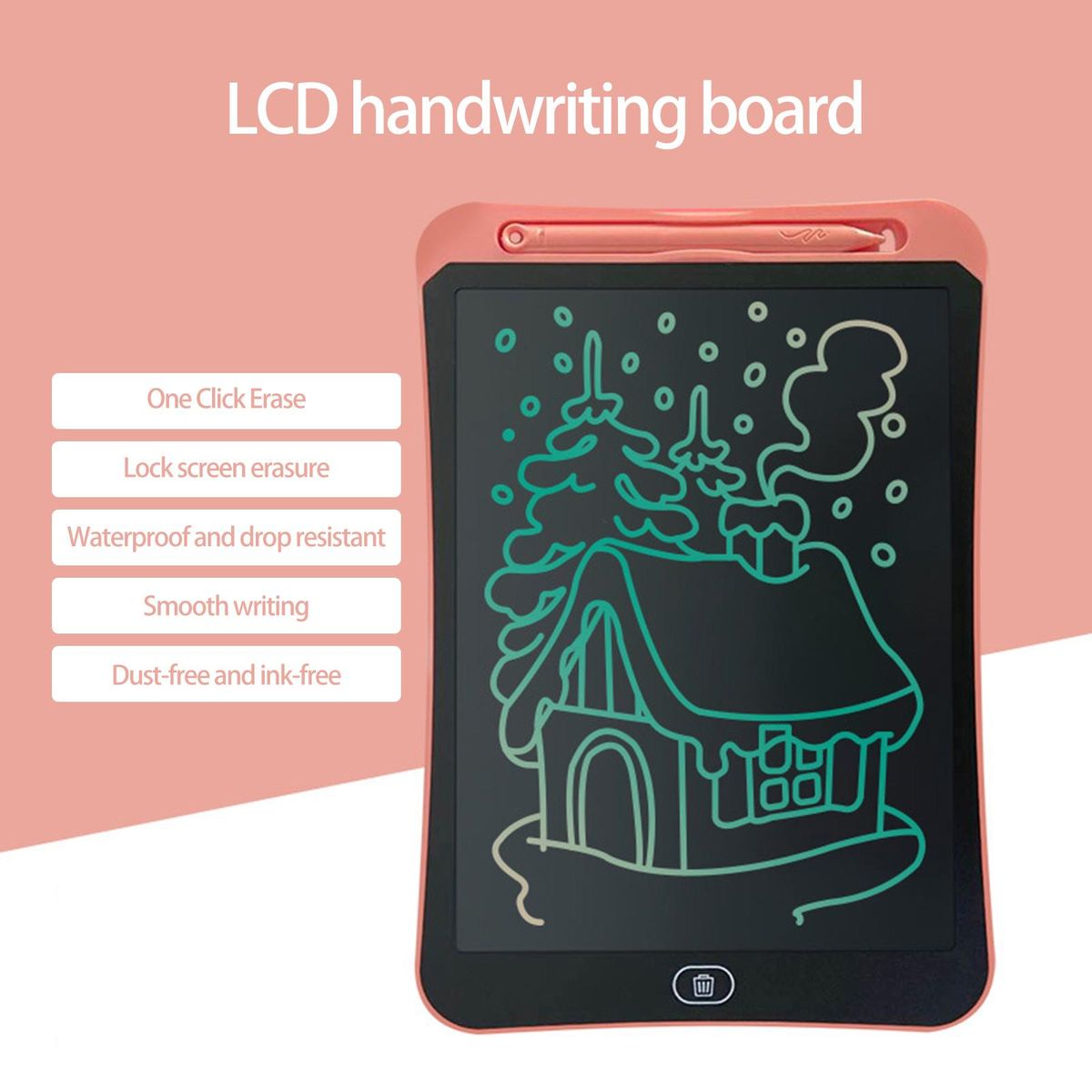 Featuring LCD screen design, this writing tablet can save the paper and better protect kid's eyes and use for a long time without eye fatigue.