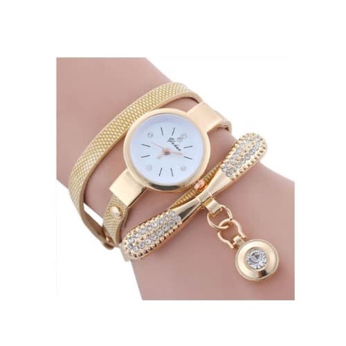 Buy Elegant Fashion Women Leather Rhinestone Wrist Watch-gold in Nigeria
