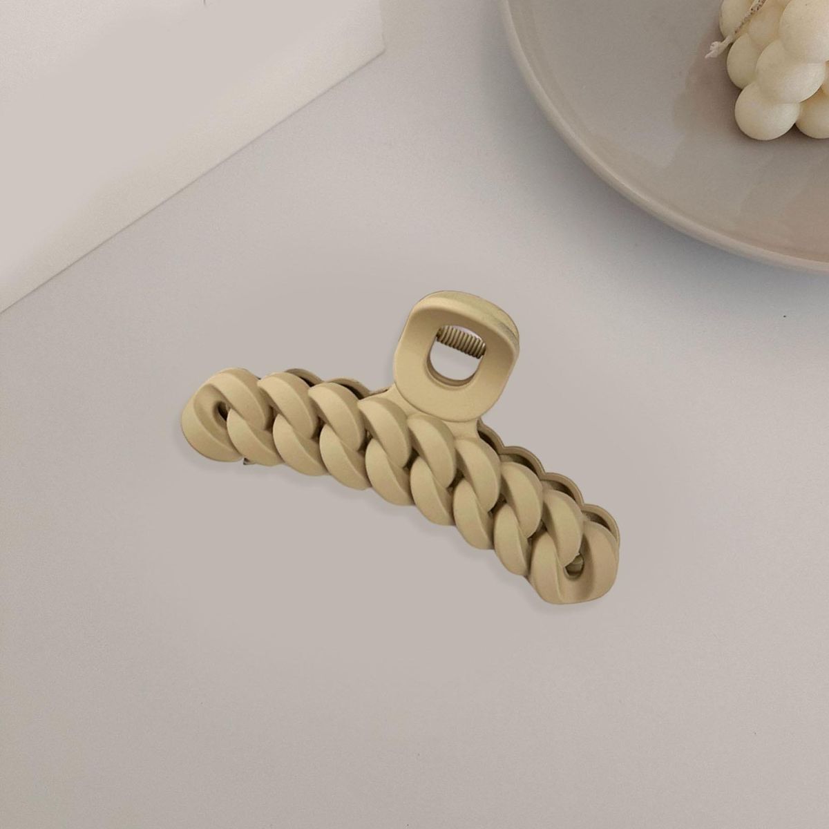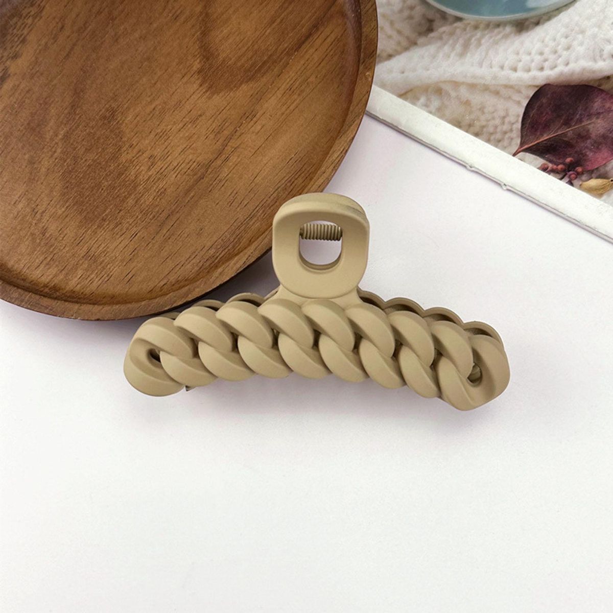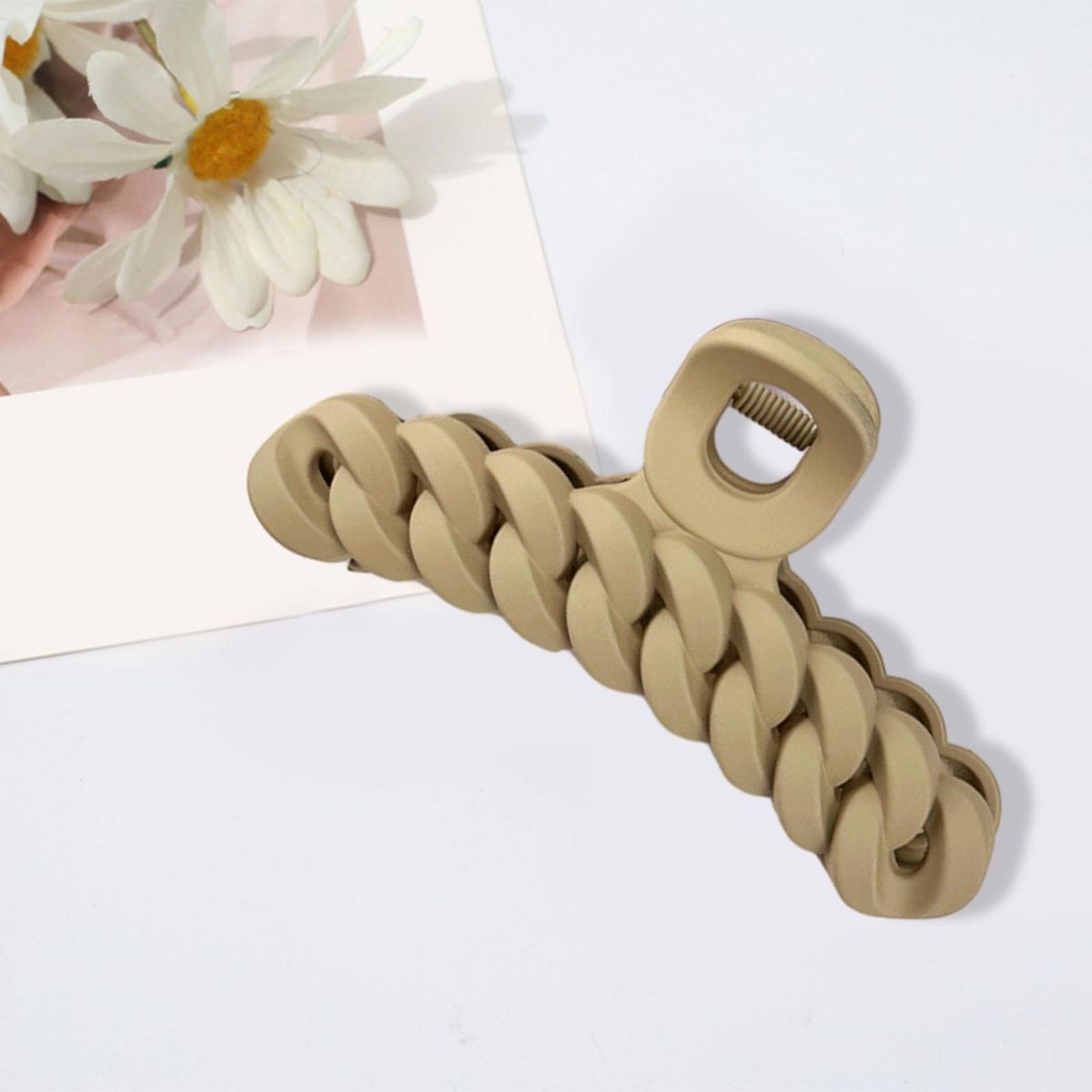 Our hair claw, the perfect accessory for elegant and delicate female friends. this hair claw is designed to securely hold your hair in place without causing any damage to your scalp. the twist-shaped matte gripper not only ensures a firm grip but also has a sleek appearance that protects your scalp.