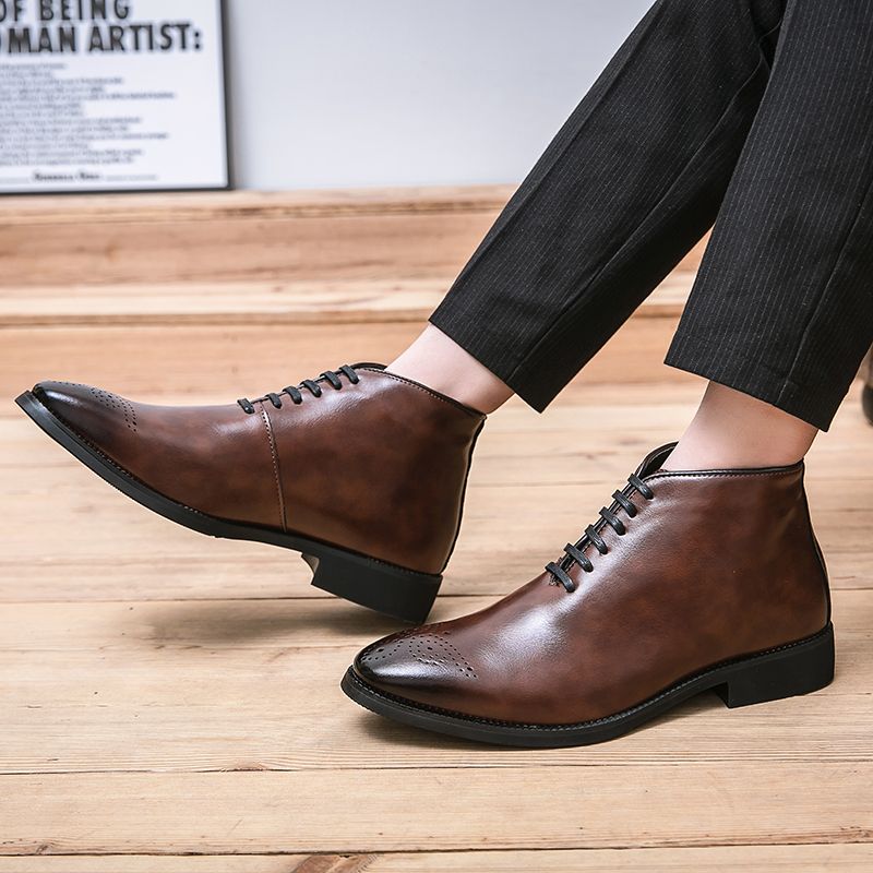 Buy Elegant High-top Business Boots Men Oxford Shoes Big Size 38-48 Superior Quality Full Grain Leather Wedding Party Shoes Luxury Noble Boots Brown in Nigeria