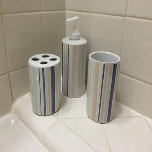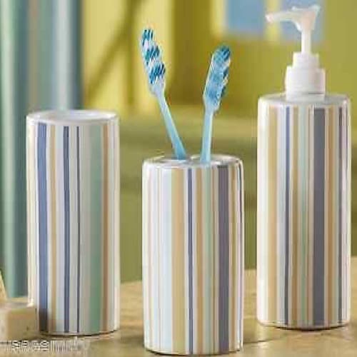 Buy Elegant Pastel Blue Stripe Ceramic Bathroom Accessory in Nigeria
