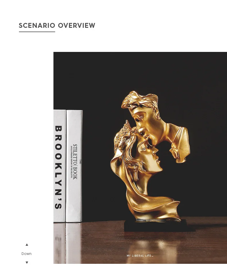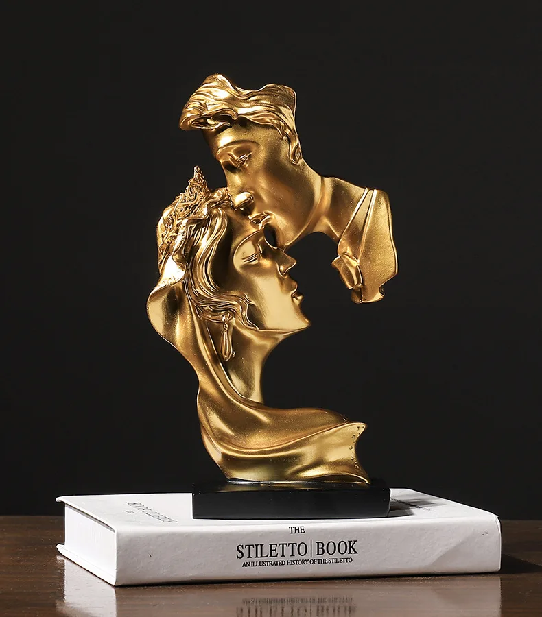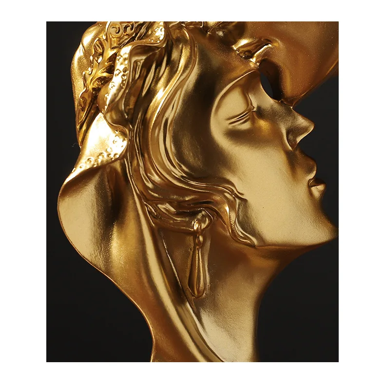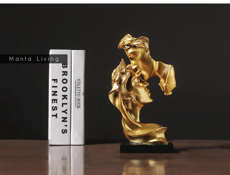 Golden Souble-sided Ornaments Couple Kissing Resin Statue Sculpture Desktop Decoration Home Decor Furnishings