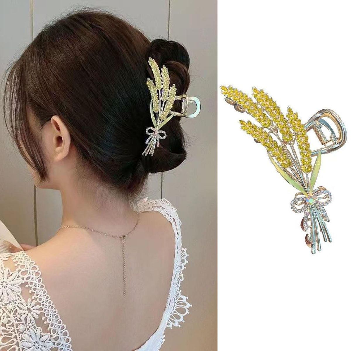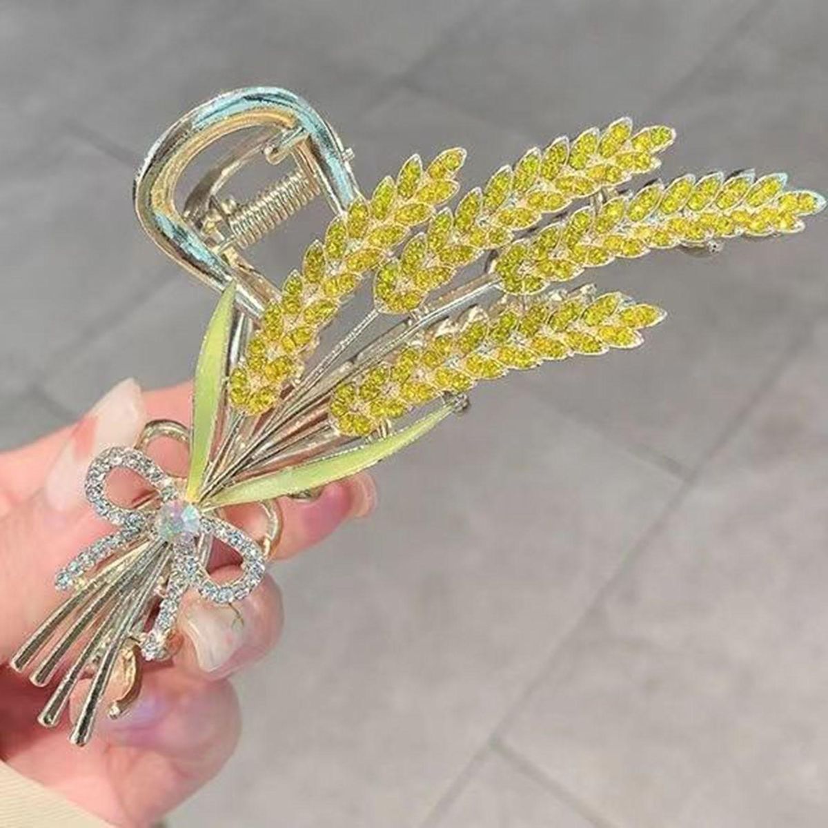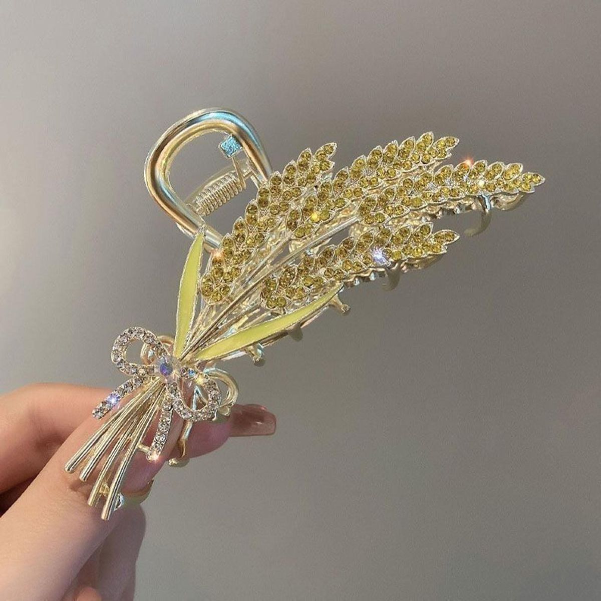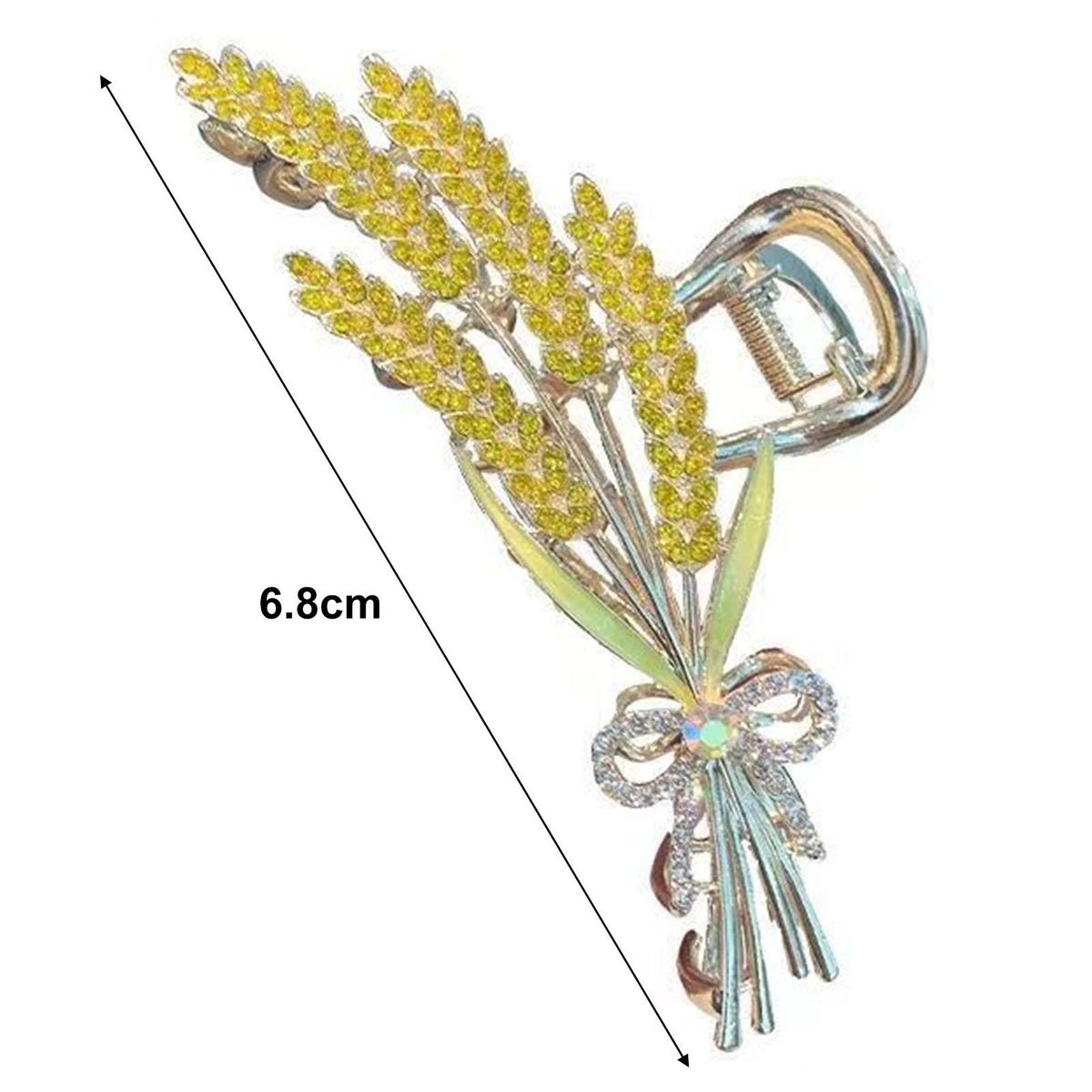 Our hair claw with rhinestones, the perfect accessory to enhance your hairstyle and showcase your sweet temperament. made with durable alloy material, this hair claw is smooth and free from burrs, ensuring a comfortable and snag-free experience. the exquisite shark clips feature smooth hair teeth that firmly grip your hair, preventing any slipping or sliding throughout the day. with its embellished rhinestones, you can wear this hair claw on wheat ears to add a touch of elegance to your look. measuring at 6.8 cm in length, this extra-sized hair claw provides a secure hold for all hair types. whether it's for daily wear, parties, gatherings, or going out, this versatile hair accessory is a must-have addition to your collection.