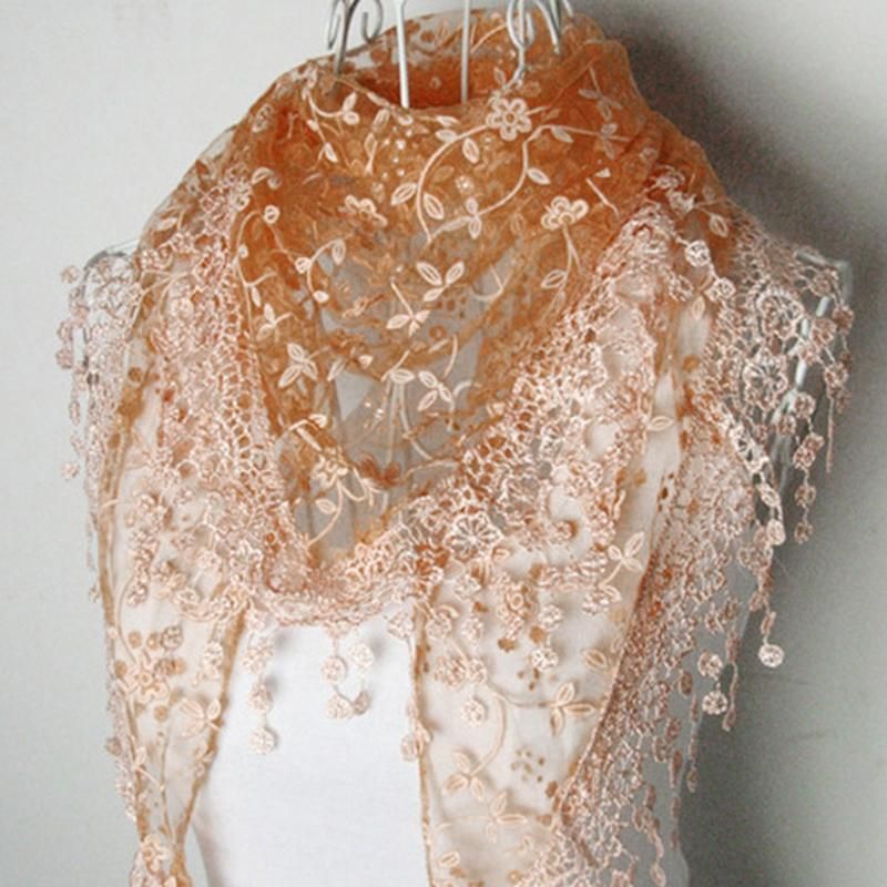 Buy Elegant Triangle Floral Lace Wrap Scarf Women Tassel-Red in Nigeria