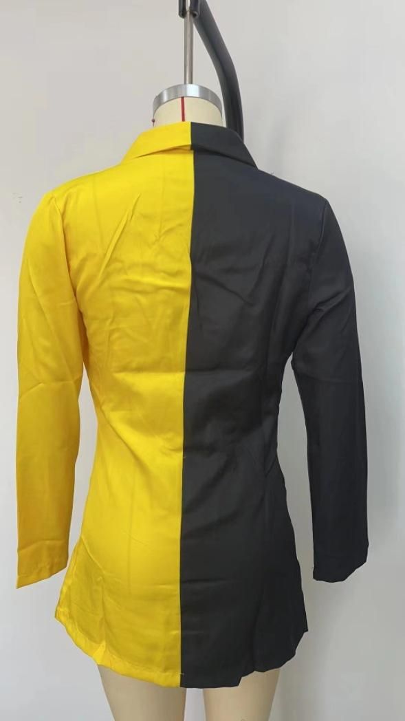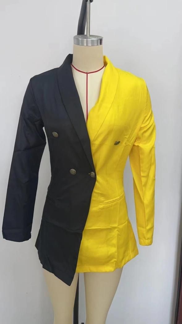 Elegant V Neck Office Lady Suit Dress Spring Autumn Long Sleeve Party Dress Women Colorblock Casual Blazer Mini Dress Robe