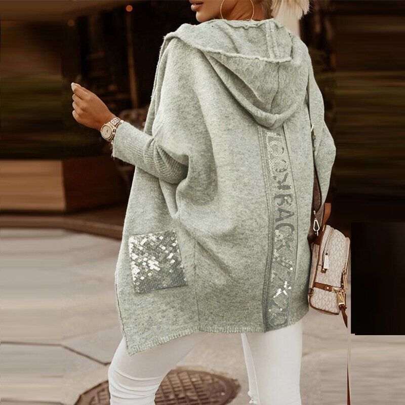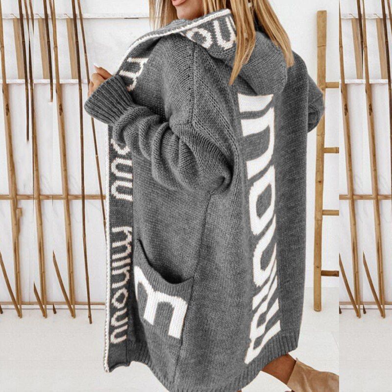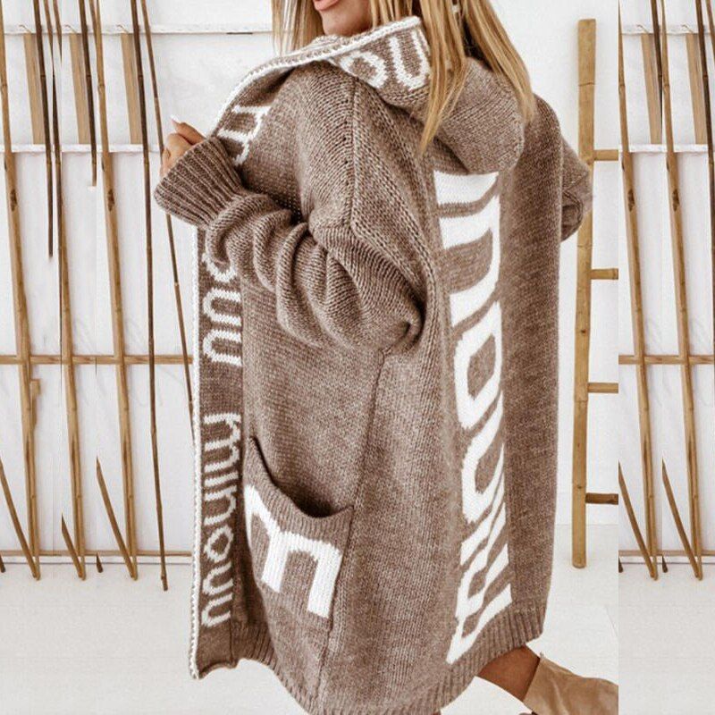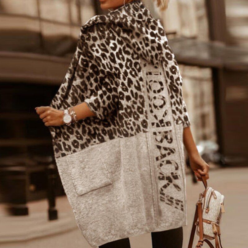 1X Elegant Warm Fall Winter Overcoats Women Fashion Letter Print Woolen Coat Ladies Casual Leopard Hooded Coats Streetwear 2021 New