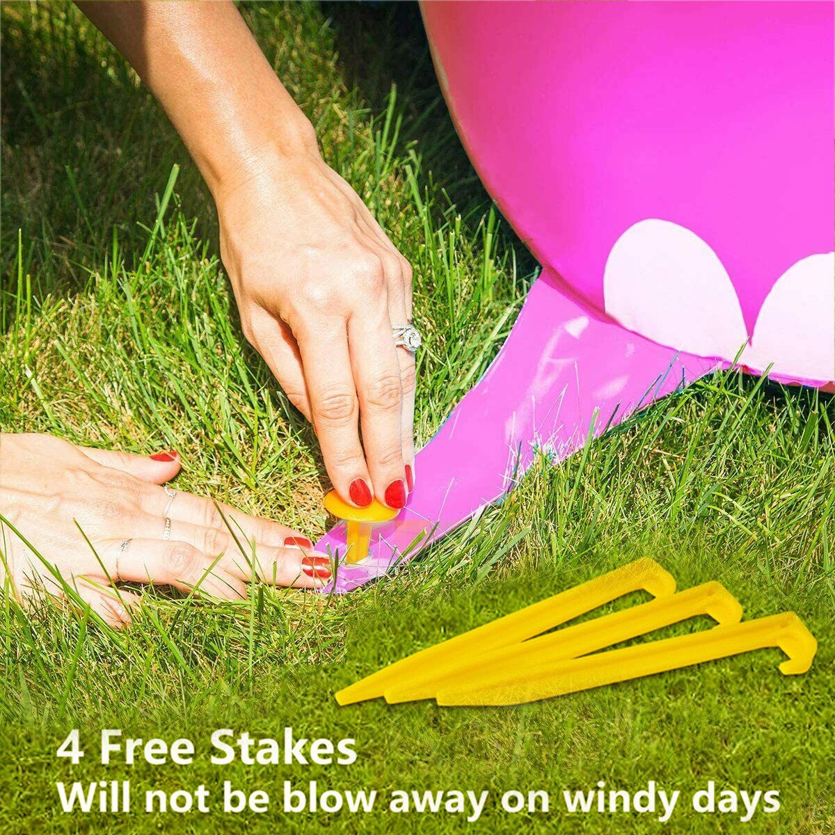 2.Easy to use: After inflating the toy, attach it to any garden hose, then adjust the water to lower or higher the spray height.