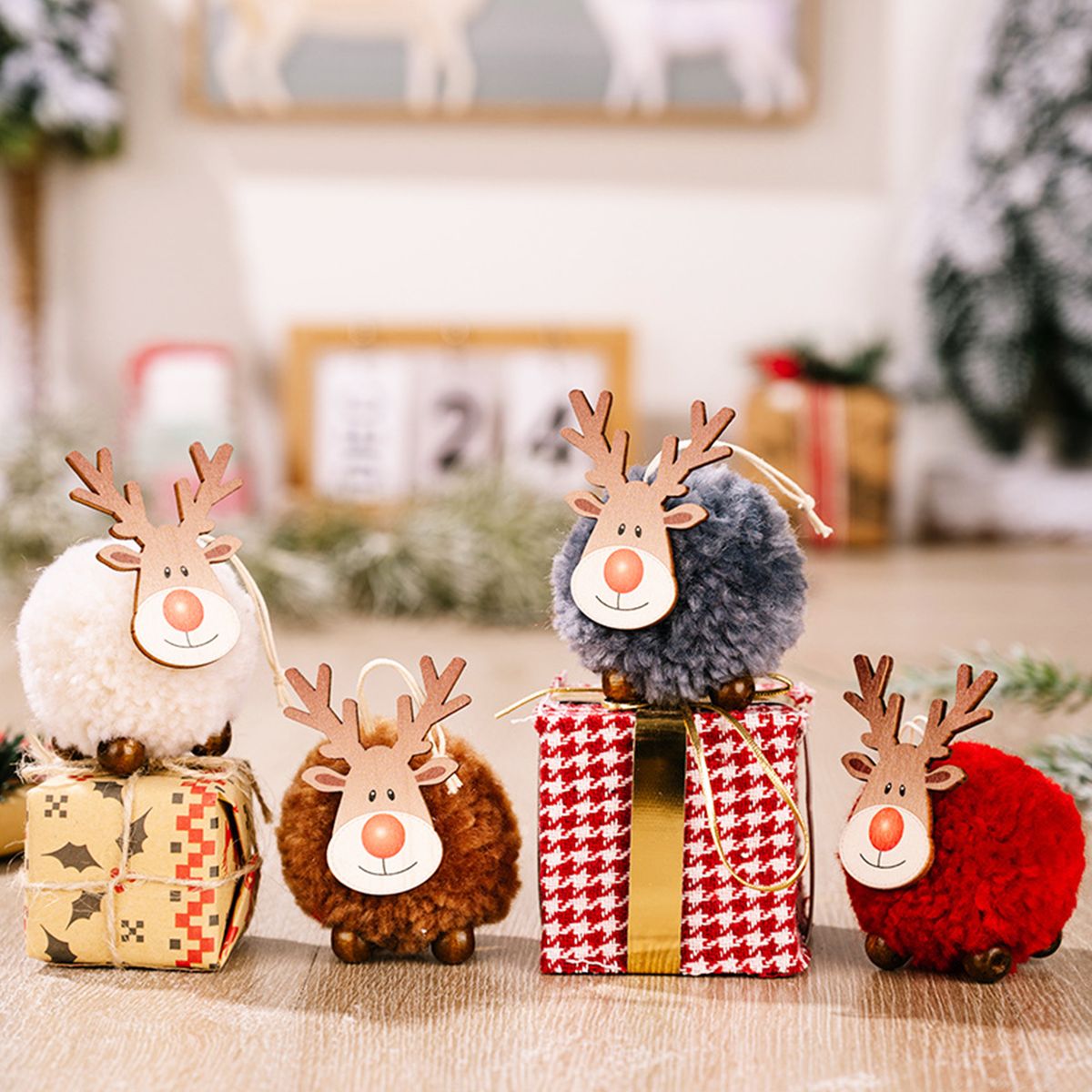 3. Christmas tree wood elk hanging pendant adds a soft festive atmosphere to the furniture.