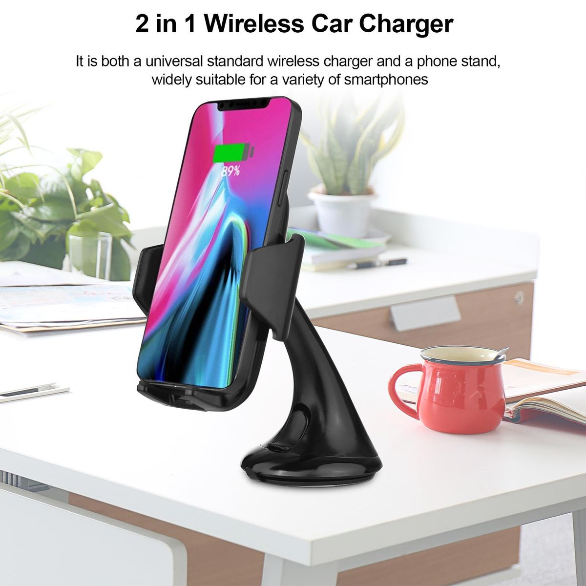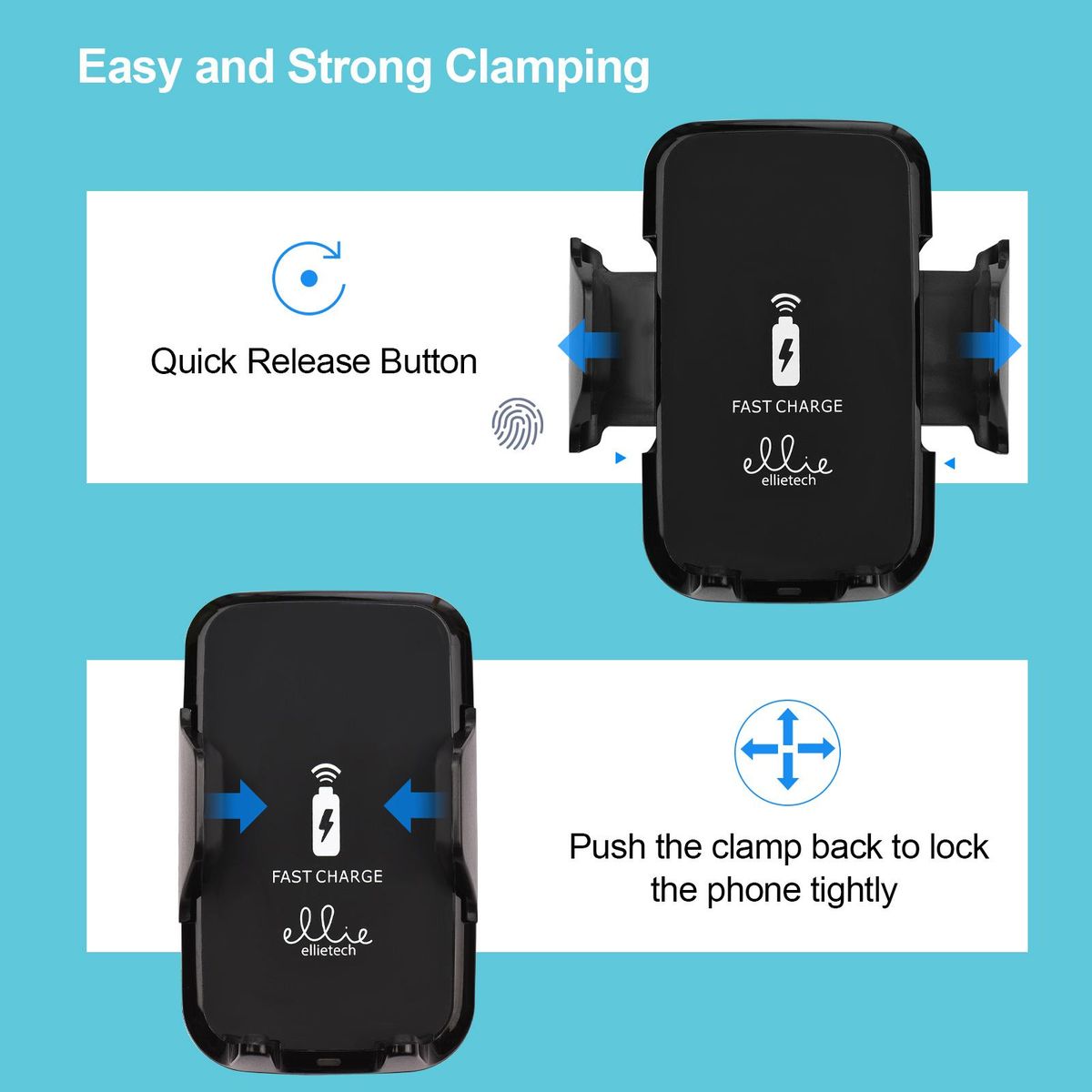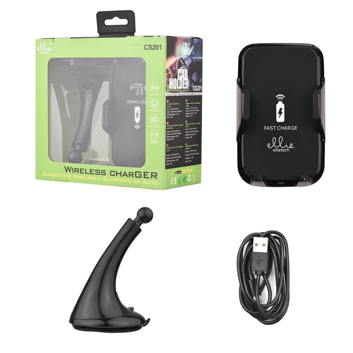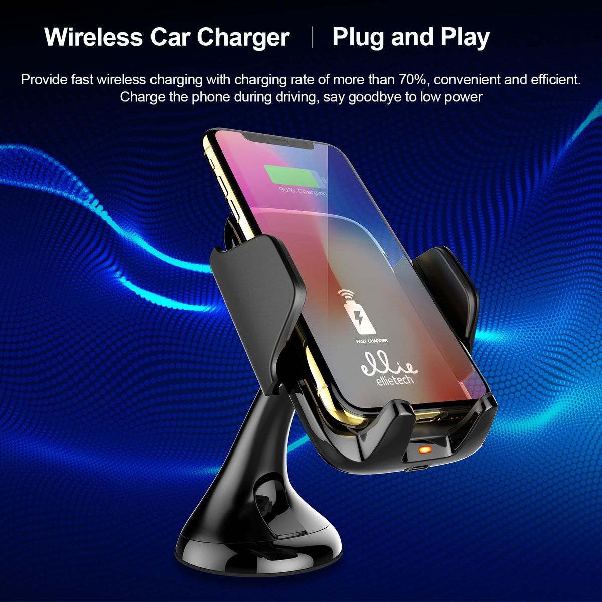 Buy ellietech CS201 Wireless Car Charger Phone Holder 2 in 1 Fast Charging Vehicle Mount Charger Rotatable Design Plug & Play for Smartsphones in Nigeria