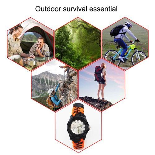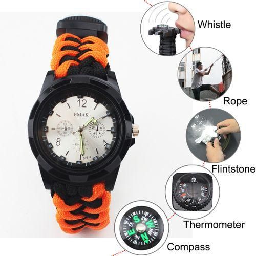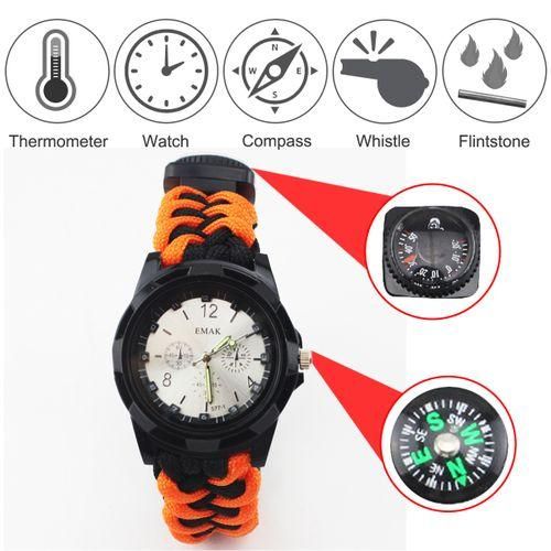 EMAK 7 in 1 multi-function outdoor sports first aid hand-woven bracelet umbrella rope camping hiking fashion watch accessories watch self-defense tool Orange Black