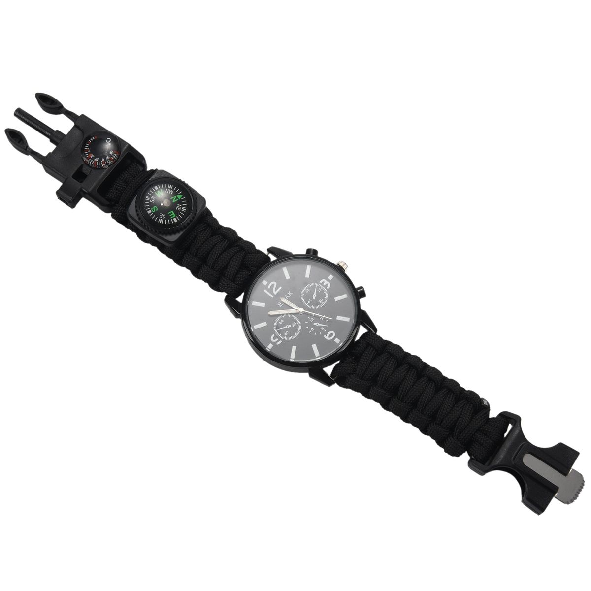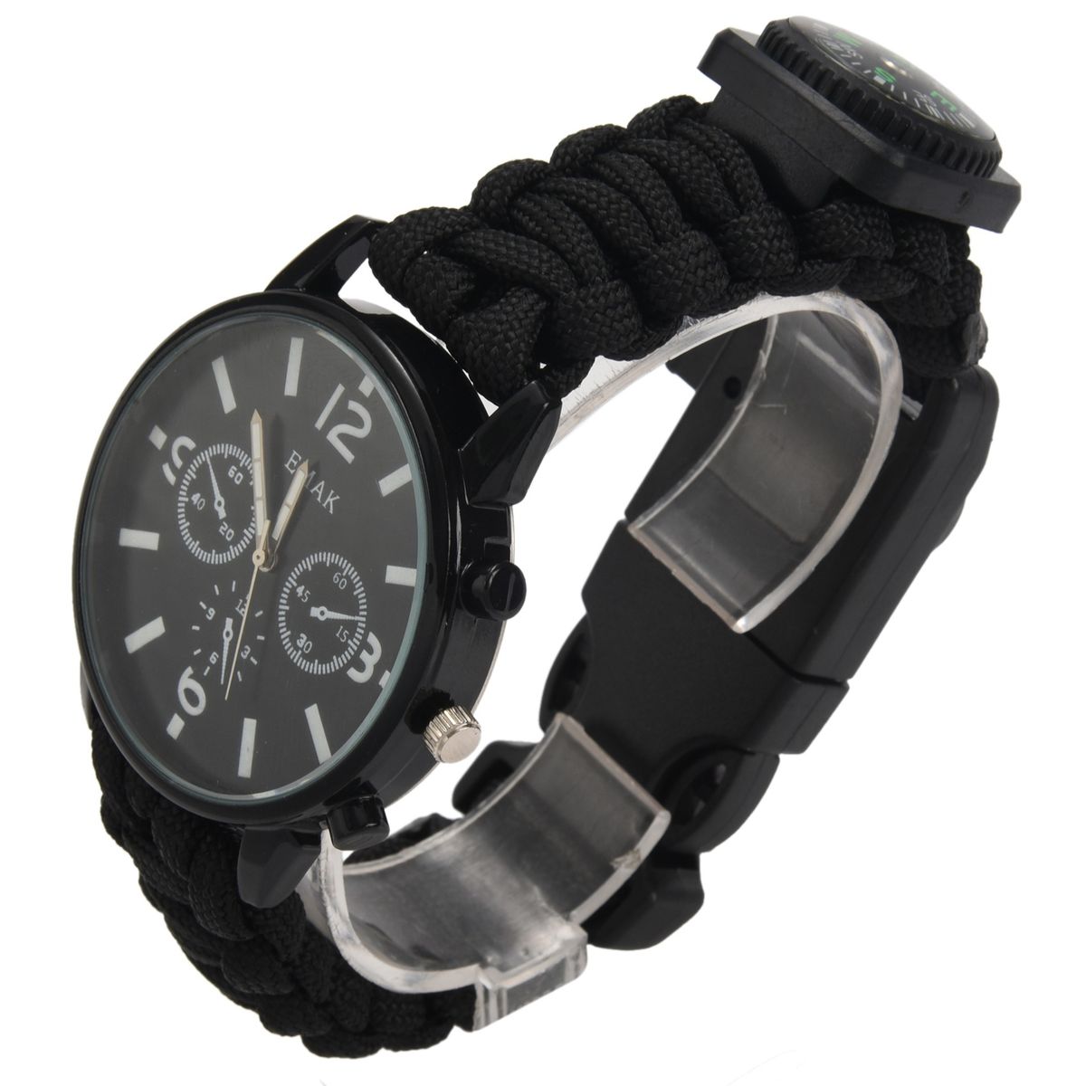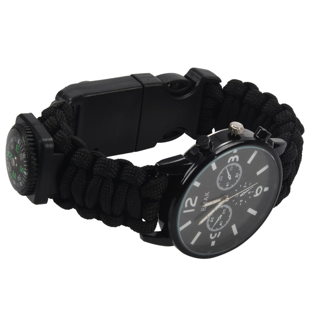 EMAK 8 in 1 multi-function outdoor sports waterproof hand-woven Luminous bracelet umbrella rope camping hiking fashion watch accessories watch survive tool Black