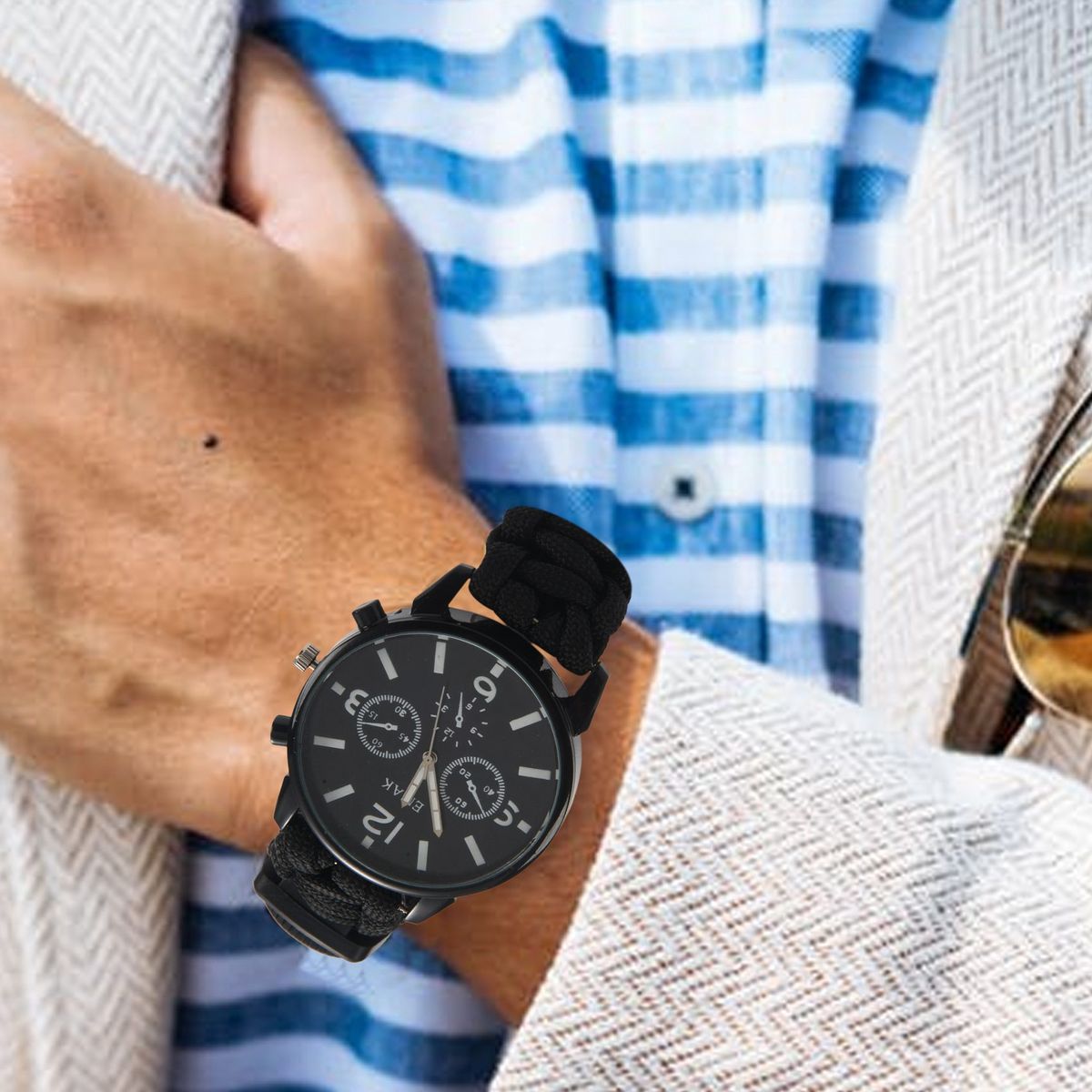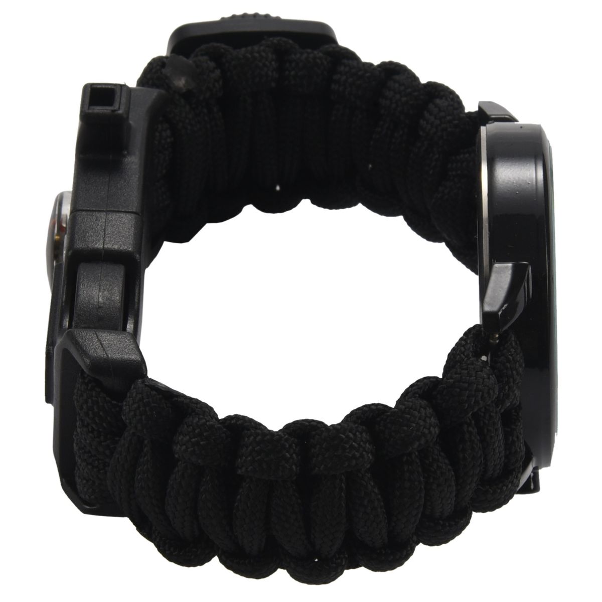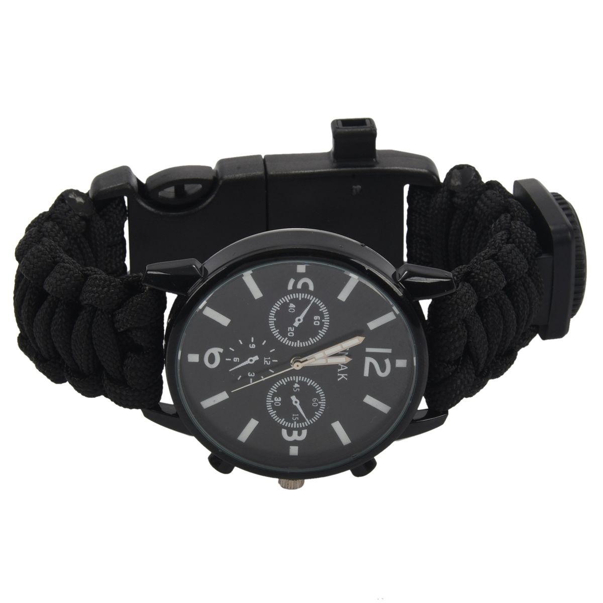 EMAK 8 in 1 multi-function outdoor sports waterproof hand-woven Luminous bracelet umbrella rope camping hiking fashion watch accessories watch survive tool Black