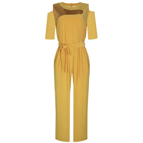Buy Embellished Cold Shoulder Jumpsuit - Yellow in Nigeria