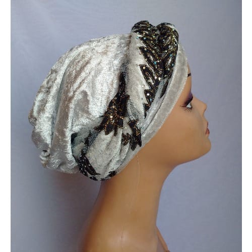 Lovely white turban scarf for beautiful and fashionable women; easy to wrap and gives no stress. Suitable for all dressing. One hundred percent velvet. Get this lovely head wrap to complement your dressing