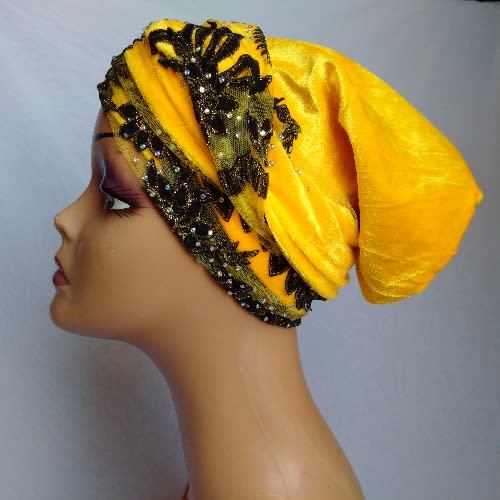 These fashion head turban is made from velvet material. It can be match with office or native wear. Unique nd beautiful.