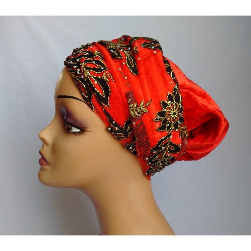 How to use: pad your hair properly with a cap and tie with an ordinary scarf then wear this beautiful red turban and wrap as desired. in this way, you will get a well efined full head with a beautiful bond behind