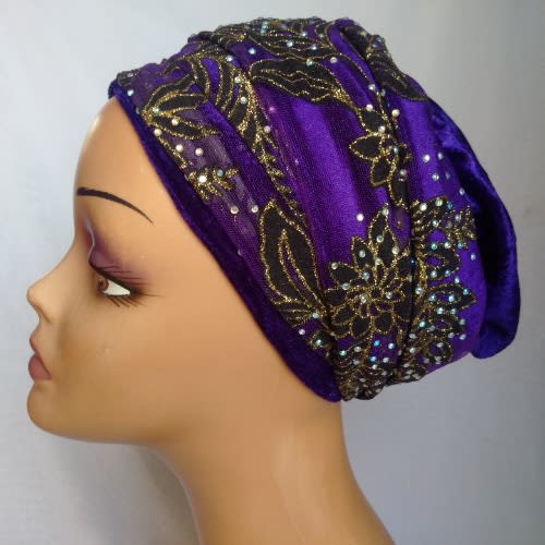 Lovely purple turban scarf for beautiful and fashionable women, it is easy to wrap and gives no stress. suitable for all dressing. one hundred percent velvet. get this lovely head wrap to complement your dressing