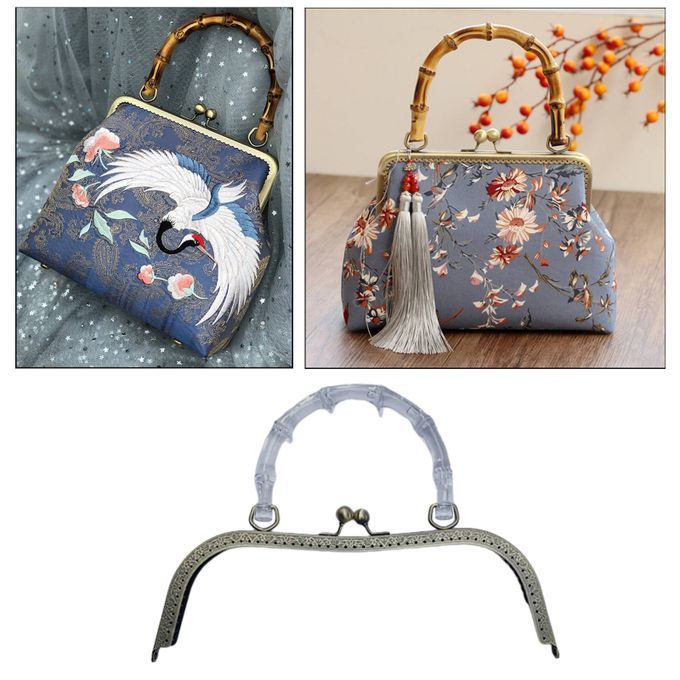 Purse Clasp Frame;Metal Purse Frame Kiss Clasp Lock Handbag Handle;Clutch Coin Purse Making Supplies Frame DIY Craft;Retro Vintage Arch frame Wallet Bag Handle Tool;Bamboo Handle Sewing Craft Accessories ;Sewing Purse Handles Coins Bag Decorations
