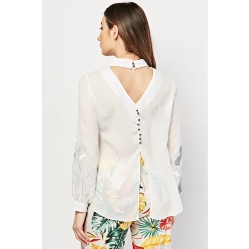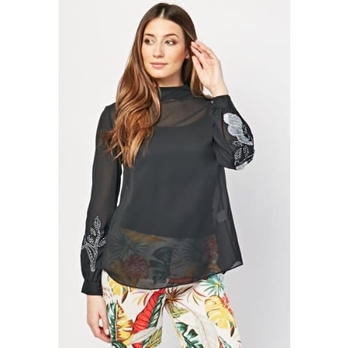 Buy Embroidered Flower Encrusted Blouse - Black in Nigeria