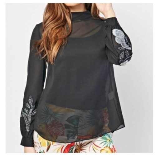 Buy Embroidered Flower Encrusted Blouse - Black in Nigeria