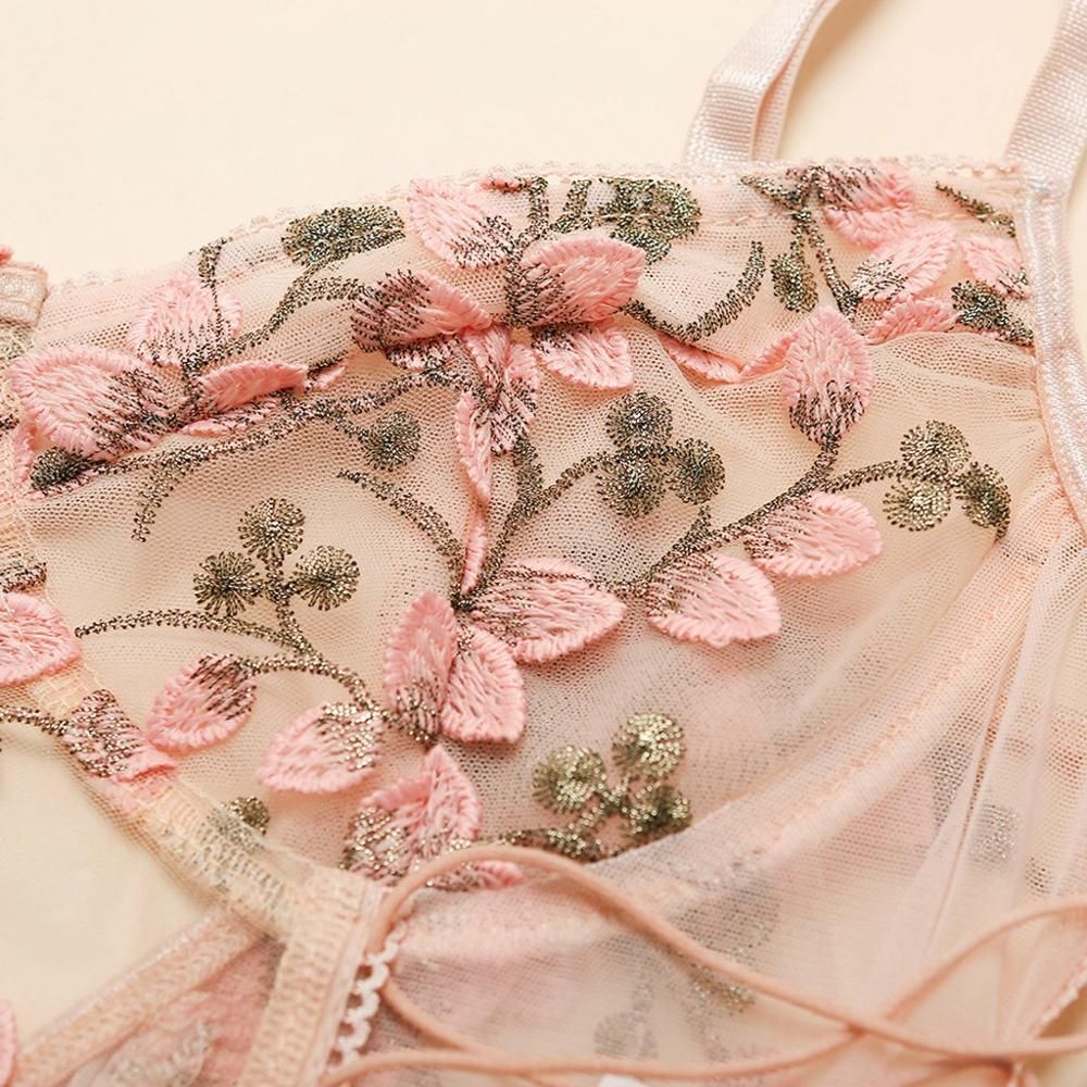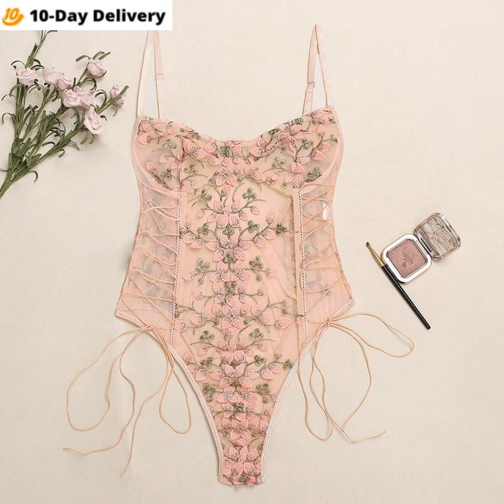 1X Embroidery Lace Transparent Bandage Bodysuit Sleepwear Backless Jumpsuit Lingerie Sleepwear S-L