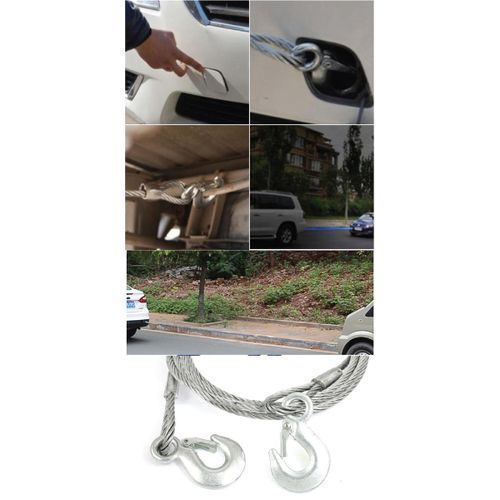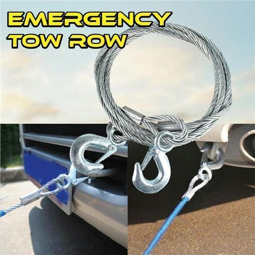 What are you supposed to do if your car breaks down in the middle of the road? Or in the middle of traffic? With the Emergency Tow Rope, simply hook your car to another and have it pull you to a safe place or the nearest garage. Strong and durable. Your car can break down multiple times, but you only need one Emergency Towing Rope to fix it each time.Features:Strong Grip and DurableMaterial: SteelSilver coatedNew and high qualityFlexible Strong steel cableCompact, easy and convenient to useFor rescue stuck or disabled vehiclesBlue storage bag, convenient for storageForged hook with safety latch