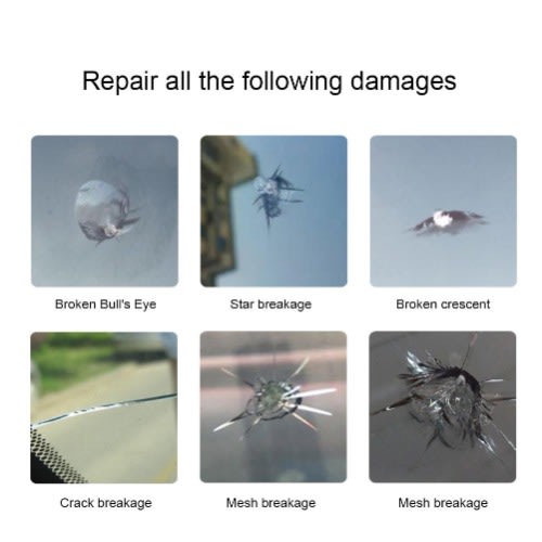 1*Glass repair tool set(1 pressure cylinder, 1 positioner, strip curing film, suction cup*2, square curing film, round curing film, repair liquid*2, 1 picking needle, 1 blade