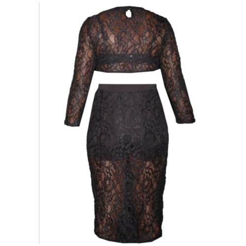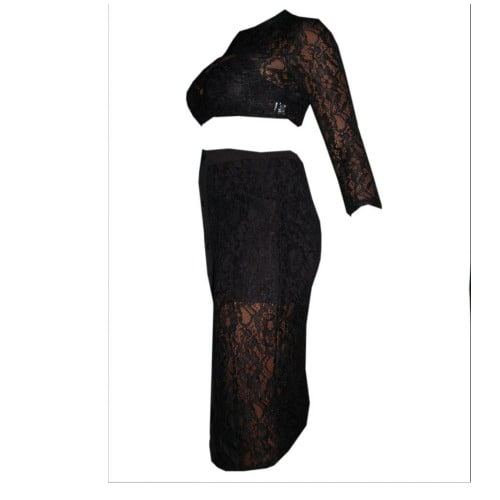 Buy Emfed Sheer Lace Crop Top With Midi Split Skirt - Black in Nigeria