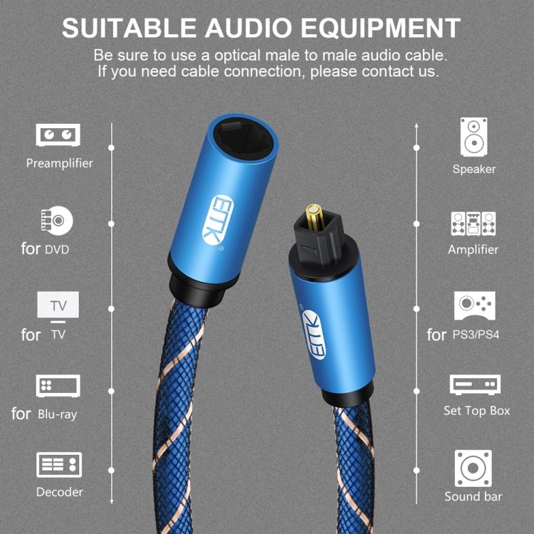 EMK Digital Optical Audio Cable, Cable Length: 1.5m (Blue)