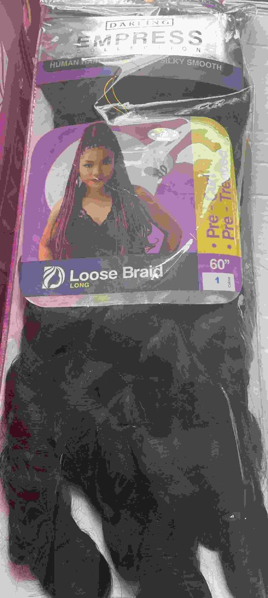 Empress Loose BraidPre-stretched and pre-curled Human Hair extension for beautiful braids.Pre-curled Loose Braids are suitable for Knotless box, diamond, triangle braid styles etc.Ensure hair and scalp is clean before installation. During installation, hold hair at the middle on equal length, separate curls from tips gently, install and finish style by wrapping curls round finger and release.