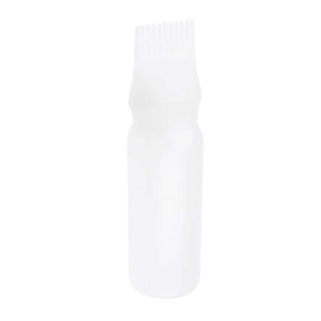 Fill the bottle with your pre-mixed hair colorants and press the bottle to get the flowing to the comb head.It will give you a more even distribution of color where you want it.Can be used for storing hair colorants and perming setting lotions.Suitable for professional salon or home use.Material: Plastic Capacity: 60ml/2ounce Size: Approx. 17 x 4cm/6.69 x 1.57inch