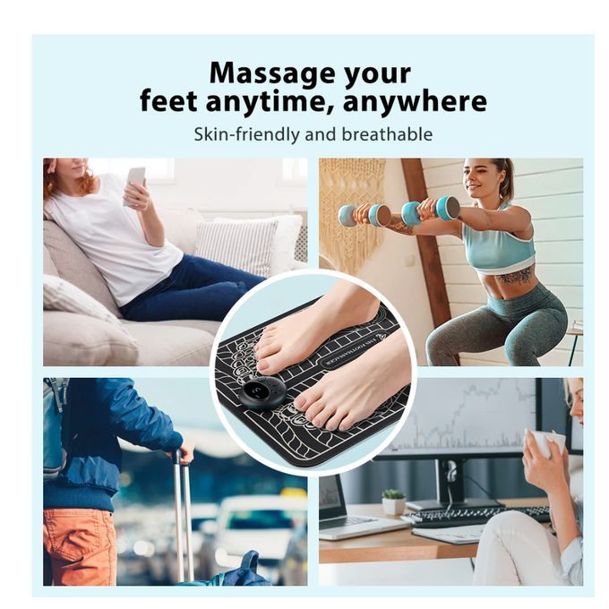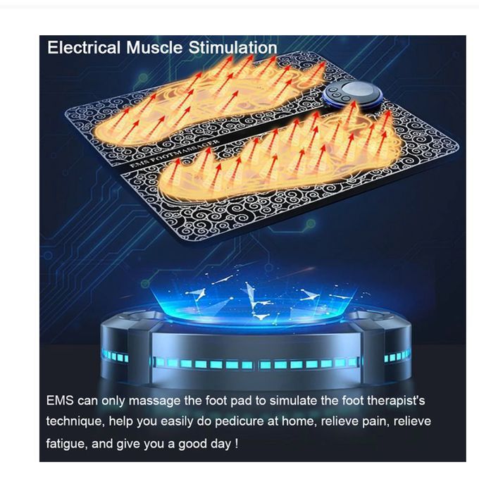 Technical InfoUses Electrical Muscle Stimulation to activate acupressure points on the soles of your feet, alleviating tired feet and calvesStimulating leg muscles to contract and release can help improve blood circulationFeatures 6 pre-programmed modes with 9 levels of intensity and 15 minutesPortable and wire-free, being USB rechargeable with remote controlSimple to store at less than 31x31x1cm