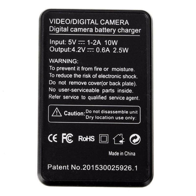 Input: 5V/ 1A-2A 10W Output: 4.2V /600mA Dimension: (l)54X (w)18X (h)85 mm Applicable : For 3.6-3.8V Li-ion Caution:? 1.Store in cool and dry place. 2.Charge in room temperature. 3.Unplug the source when not in use. 4.Clean up the terminals with a cloth if soiled. 5.Do not expose the product to , water, moisture. ? Package Included: ? 1 x Manual 1 x USB Cable 1 x EN-EL5? Charger For NIKON