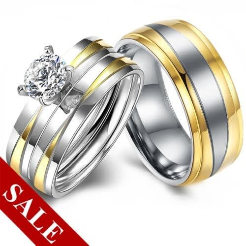 Buy Encrusted Wedding Band And Engagement Ring Set-gold in Nigeria