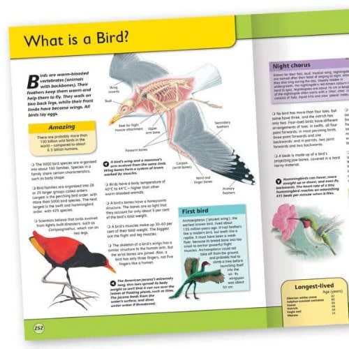 This book is an incredible reference resource. More than 300 pages cover a wide spectrum of subjects including Space, Wild Animals, Planet Earth and Dinosaurs, and each page provides knowledge, fascination and inspiration. Exactly 600 subject panels with bulleted facts are accompanied by detailed illustrations, diagrams and photographs, while Did You Know panels provide scattered chunks of extraordinary information.