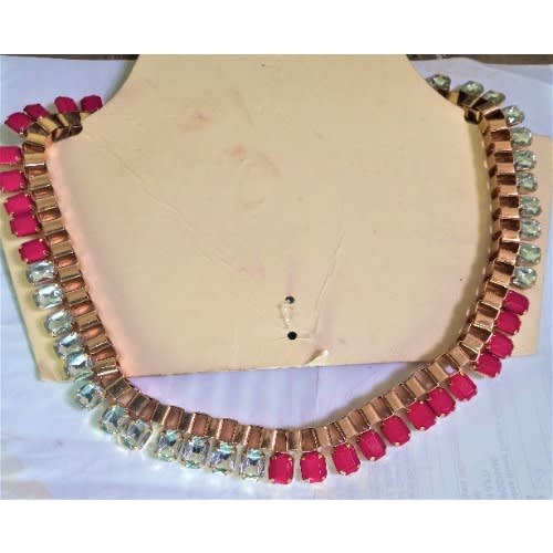 Necklace - Pink And White Color Stones On Gold Color Tone