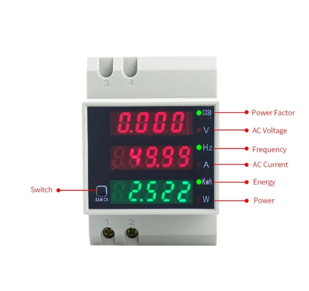 Function1.Volage curent, power, timing, Current electical energy,cumulative electrical energy2. Electric energy and timing can be reset3. Electric energy and iming have power down memory function 4. Rated frequency 45-65Hz