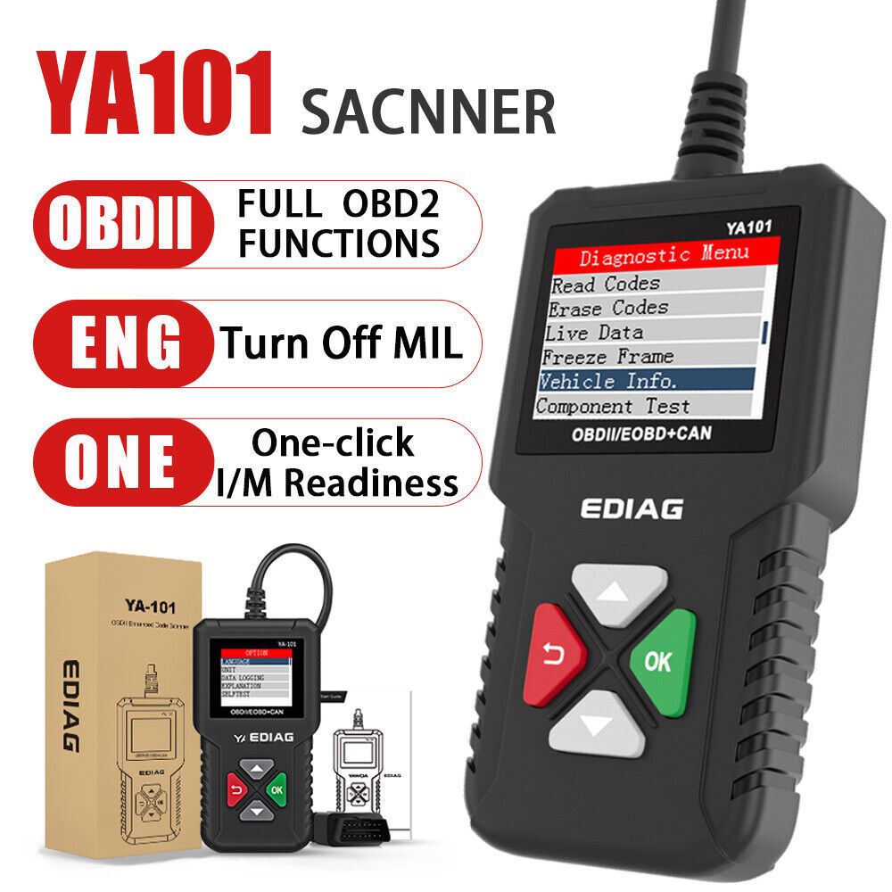 [Key Reasons To Buy EDIAG YA-101]Check Engine Light/Turn off MIL(Malfunction Indicator Light)Help to Pass Vehicle Safety Inspection and Emissions InspectionFull OBDII Diagnostic FunctionsAdvanced Mode6 On-Board Monitor Test and Mode8 EVAP Test/Compoment TestBattery TestScreenshot Display9 Languages supported and Extensive Vehicle CoverageLifetime Free UpdateEDIAG YA-101 provides full OBDII/EOBD diagnostic functions and meets protocols such as ISO9141-2, ISO14230-4,